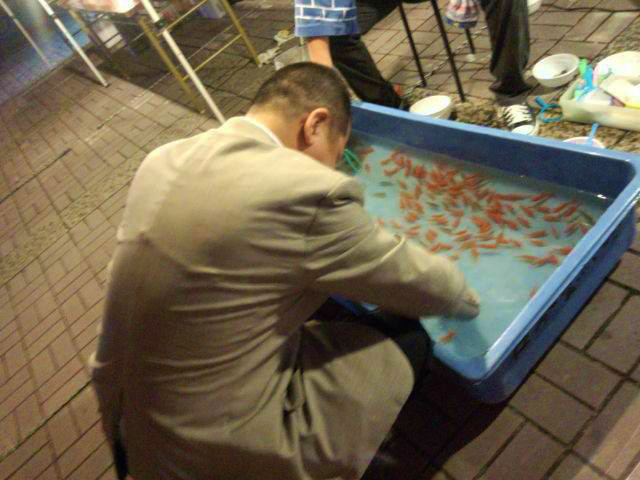 昨夜の『御殿町センター盆踊り』で金魚すくいをした。