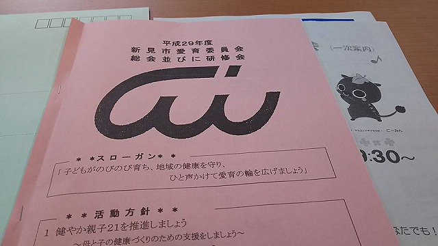 13時30分から、「やまびこ広場神郷」で開催された『平成29年度新見市愛育委員会総会並びに研修会』に出席しました。一言ご挨拶の機会を頂きました。ありがとうございました。子育て支援から地域で健やかに暮らすための高齢者支援まで、愛育委員の皆様にはお世話になっています。ありがとうございます。