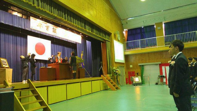 10時から『学校法人天真学園岡山県共生高等学校平成27年度卒業証書授与式』に出席しました。ここでも、春、見っけ!みんな、おめでとうございました。未来は君たちの手にある、頑張って!