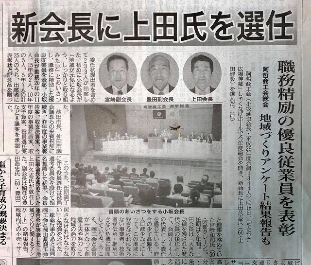阿哲商工会の人事、見事な事業継承だと思う。力を合わせて地域振興に取組みたい。