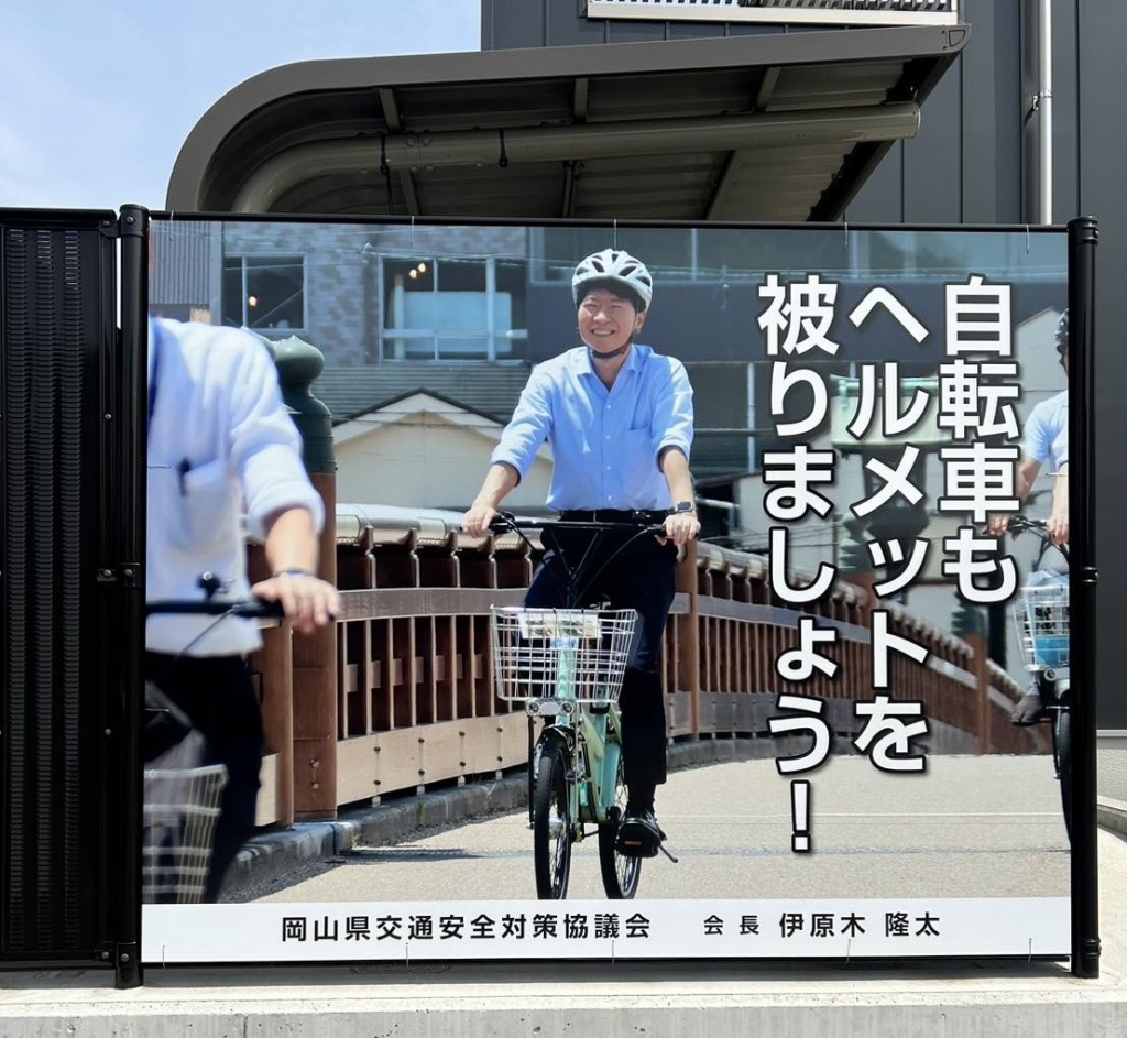 岡山県庁すぐ近くの「内山下交番」の所に、啓発看板が設置されている。
