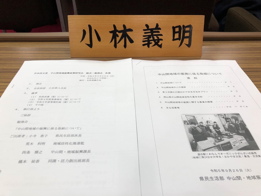 13時から、県議会「土木委員会」の「ペーパレス化研修会」に出席。便利になります。続いて、県議会自民党「中山間地域振興政策研究会(小田春人会長)総会・勉強会」に出席。私は引き続き副会長を務めさせて頂くことになりました。勉強会で、執行部から「中山間地域振興は県政の最重要課題である」との発言がありました。心強く感じました。発言させて頂きました。