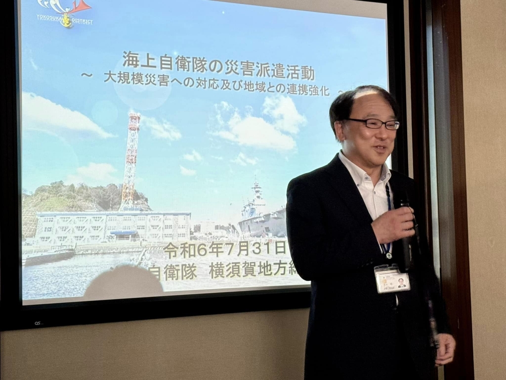 剣が会「総務委員会」の県外調査2日目です。午前中、「海上自衛隊横須賀地方総監部」を訪問して、「海上自衛隊における防災・国民保護に係る対応について」調査しました。昼食は「隊員食堂」でした。