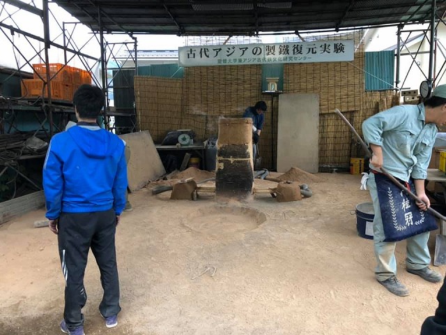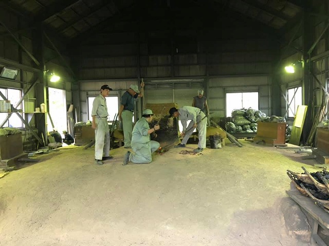 正田のたたら操業施設で17時から開催される『たたら製鉄操業』の現場を激励訪問しました。
