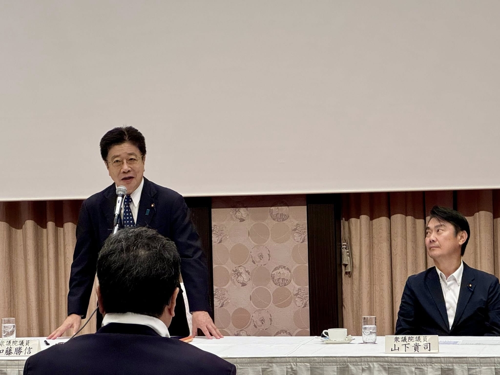 岡山市へ移動して、加藤勝信大臣が小泉進次郎選対の本部長を務められることから結成された「小泉進次郎総裁選挙候補者を応援する自民党岡山県議会議員・岡山市議会議員有志の会」に出席しました。小泉進次郎代議士は、オンライン出席でした。よろしくお願いします。