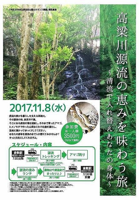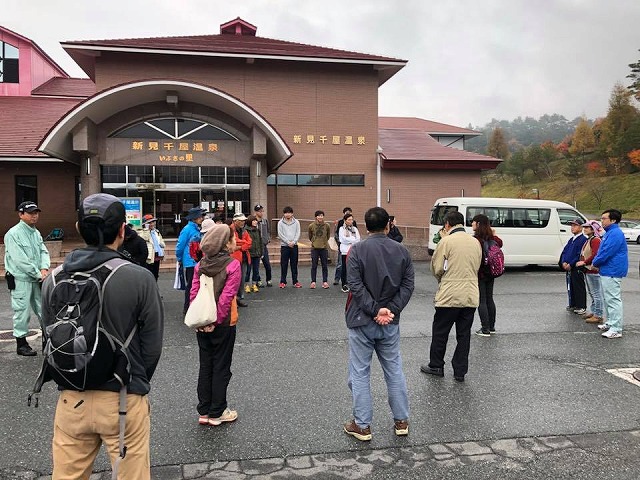 9時頃から、新見警察署で要望の件について協議。続いて千屋へ移動して、「千屋温泉駐車場」で、『平成29年岡山県自然公園ルネサンス事業受託事業「高梁川源流の恵みを味わう旅~清流で入れ替えあなたの身体~」』参加者19名(総勢30名)の皆様を歓迎しました。楽しい新見でのひと時をお過ごしください。ありがとうございます。県の受託事業でありますから、県職員の皆様もご出席でありました。重ねてお礼申し上げます。