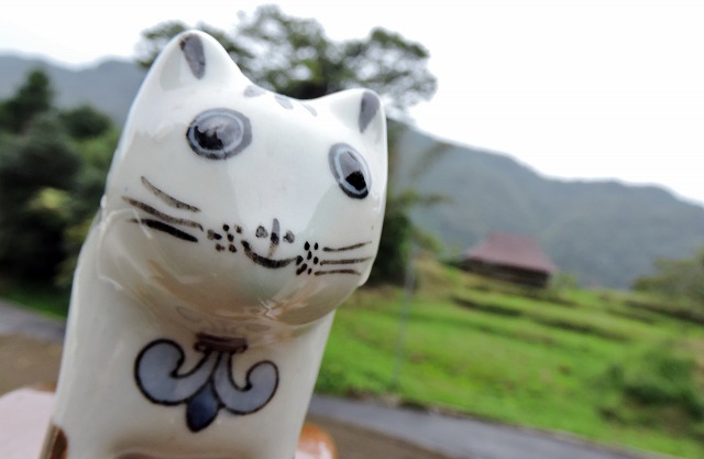 じわりじわり台風接近です。雨が降り始めました。長ナスをいただいた「朝のお散歩」、ノラ猫くんもお行儀よく雨宿りであります。強い台風のようです。備えをお願いします。