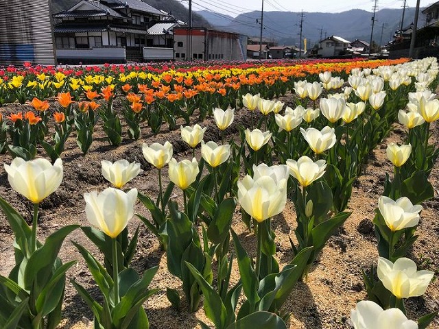 新見市唐松の「唐松公民館」周辺でチューリップが咲いておりました。4月10日、「チューリップまつり」が開かれる。