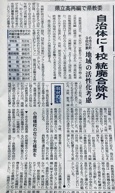 県立高等学校の再編問題。険しい道のりだ。すでに次の10年に向けて検討が始まっているはずだ。引き続き注視していきたい。