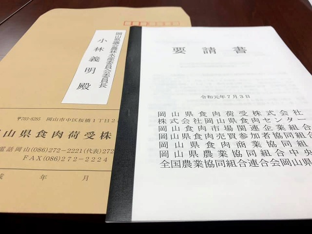 14時10分から、「県議会議長応接室」で、蓮岡議長、小倉副議長、小倉農林水産部委員長と共に、『県営食肉地方卸売市場の活性化並びに県産食肉の生産振興対策の推進について』、関係7団体の合同要望をお受けしました。しっかり頑張って参りたいと思います。席上、岡山県畜産議員連盟会長を拝命したことを報告させて頂きました。
