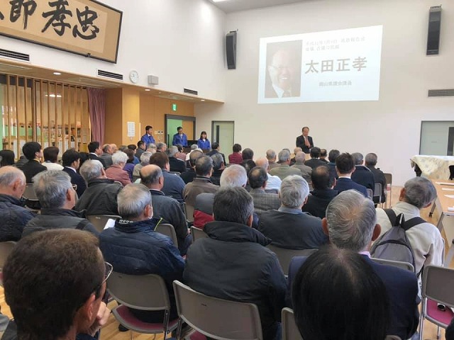 10時から、「吉備公民館」で開催された『太田まさたか県政報告会』に出席しました。太田県議は自民党公認候補として、来る3月29日告示、4月7日投票の岡山県議会議員選挙に立候補を予定しています。4期目の挑戦です。志を同じくする者の一人として、共に頑張りたいと思います。ご盛会おめでとうございました。