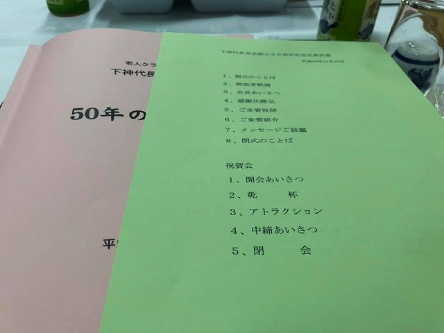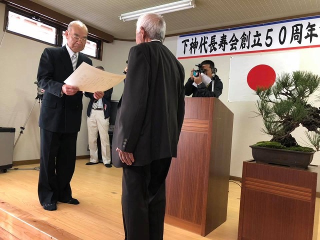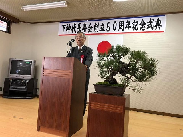 10時から、「神郷公民館坂根分館」で開催された『下神代長寿会創立50周年記念式典』に出席しました。おめでとうございます。一言お祝いのご挨拶を申し上げました。ありがとうございました。