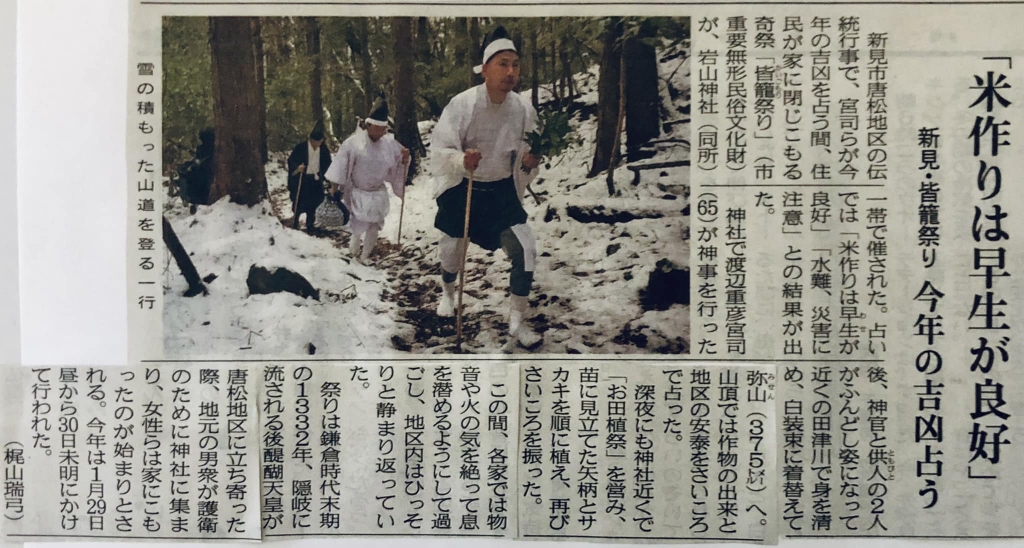 住まいする新見市唐松の奇祭を、山陽新聞が伝えている。