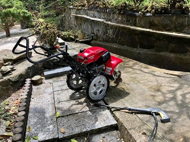 12時過ぎから、段々畑の耕作。天気もいいので、耕運機の掃除も。何事も後始末が大事だ。
