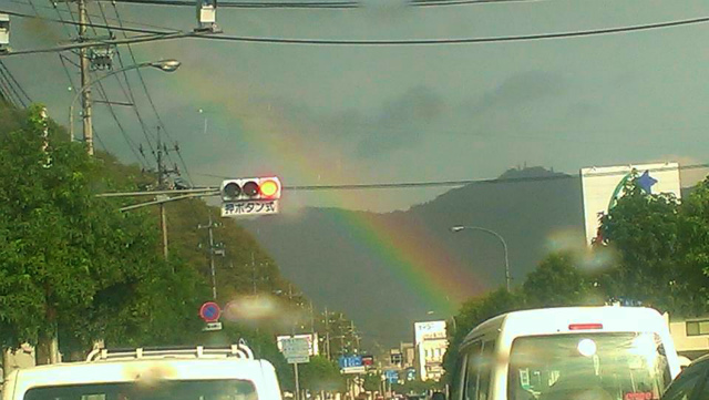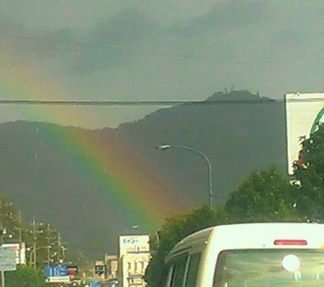 県議会「農林水産委員会」が終わって、先輩県議に昼食をご馳走になってから、国道180号をひたすら北上して新見へ帰ったのでありますが、新見は激しい夕立。そして晴れ。それから『虹』。幸せな瞬間でした。